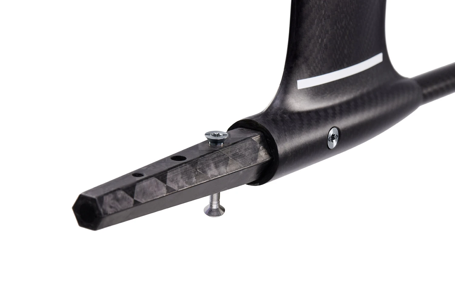 We’ve streamlined, strengthened and simplified the rear wing connection by attaching the tail wing directly to the A+System TC Fuselage and combining the current TTF shape directly into the fuselage. For most riders this means a simple, direct, shim-less connection of the tail wing.
