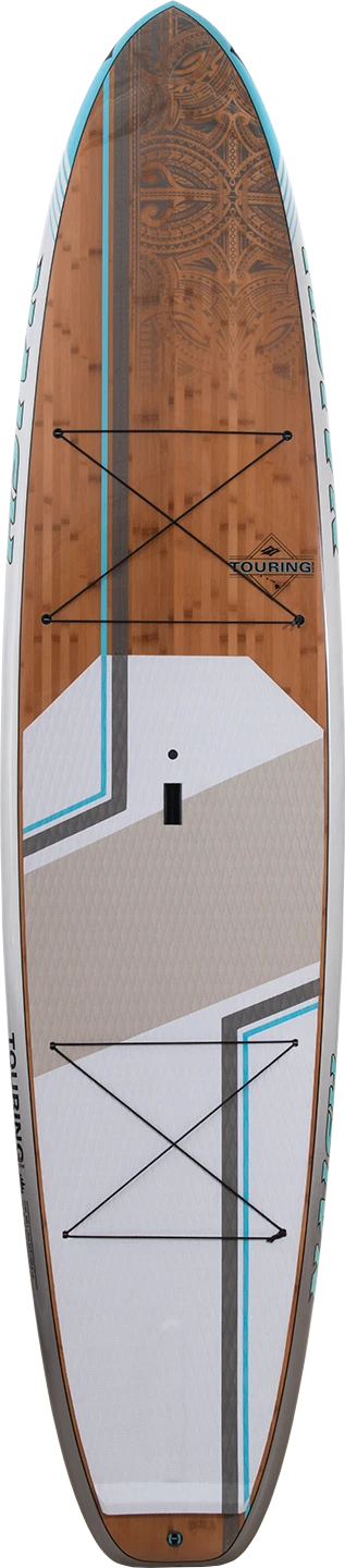Fast and easy to paddle, our Touring boards are built for adventure. The rocker is optimized to get the most glide out of every stroke which conserves energy and allows riders to paddle farther. A slightly recessed deck and flat bottom section in the stance area enhances the overall stability. The displacement hull-shaped nose slices through all water conditions, ensuring easy and smooth drive, even in choppy or windy conditions. Another advantage of this shape is its large sweet spot for stability, making it accessible for paddlers of all ability levels. For those who wish to explore farther or get a bit of fishing in, the Touring also features cargo plugs on the nose and behind the stance area to attach additional accessories and supplies for whatever the adventure calls for. Complementing the board, the Touring comes with a Weedfin with a high rake angle that releases seagrass and provides maximum directional stability. The Touring custom features an additional channel in the bottom to further the board’s directional stability, as well as shoulder carry inserts for comfort.Â
