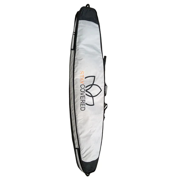 Features: Included are internal tie down straps and a 1/4″ foam padded divider. 6’0″ and 7’0″ sizes have a stash pocket for fins, wax and leashes.